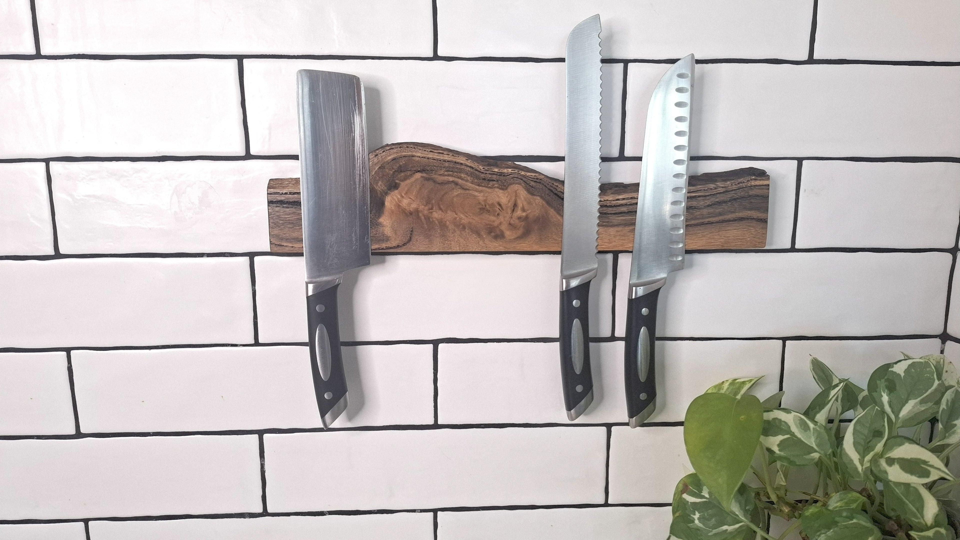 Magnetic Wooden Knife Holder - Handmade Knife Rack with Strong Magnets, Wall-Mounted Knife Strip