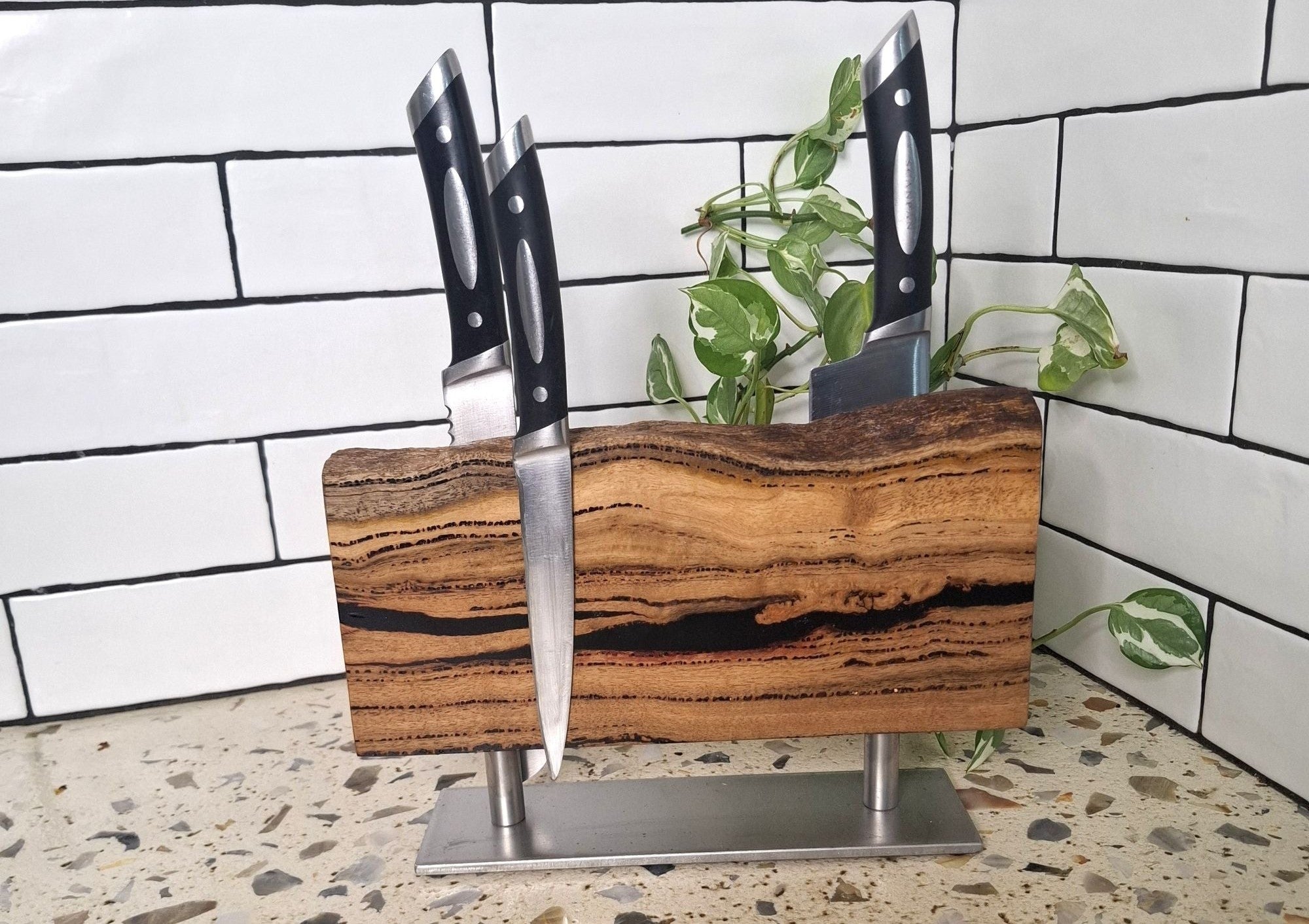 Magnetic Wooden Knife Holder, Handmade Knife Rack with Strong Magnets, Wall-Mounted Knife Strip
